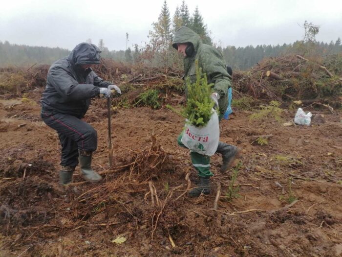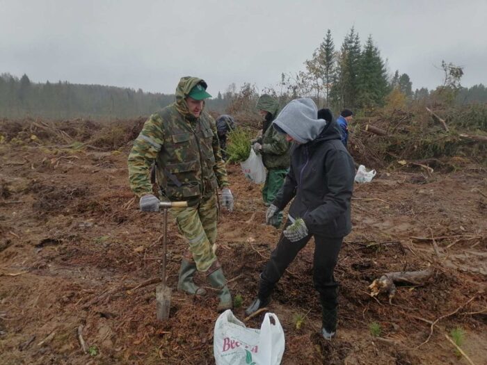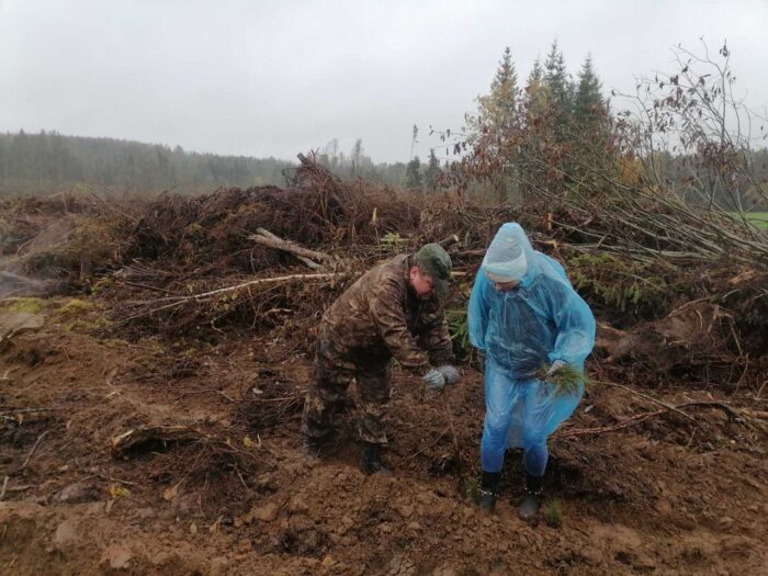 приняли участие в посадке лесных культур на ветровально-буреломной лесосеке вблизи аг. Вархи,